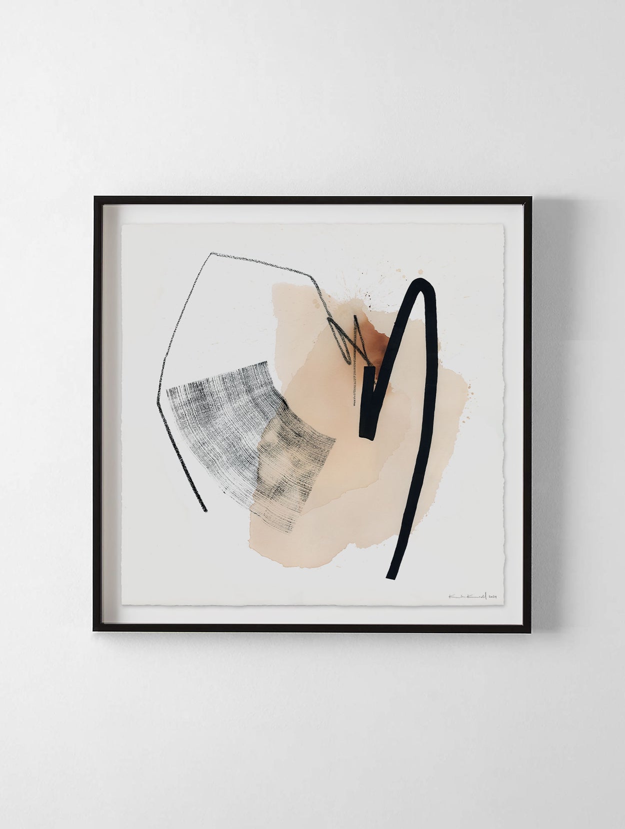 This original painting has been professionally framed with high-quality, acid-free materials using a raised float mount technique, where the painting appears to float on top of the mat board, allowing the hand-torn edges to be seen.